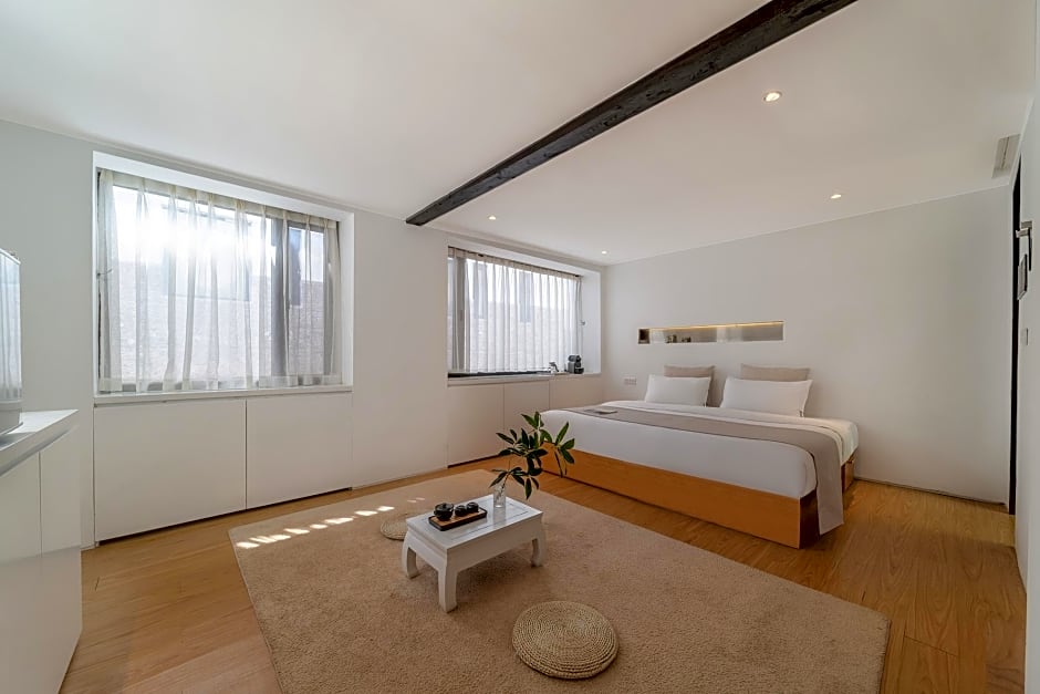 Located on the 2nd floor, room features an indoor seating area and high ceiling. There is an outside hall area which allows for occasional views of the snow mountain. Room is equipped with floor heating, insulation and electric blankets.